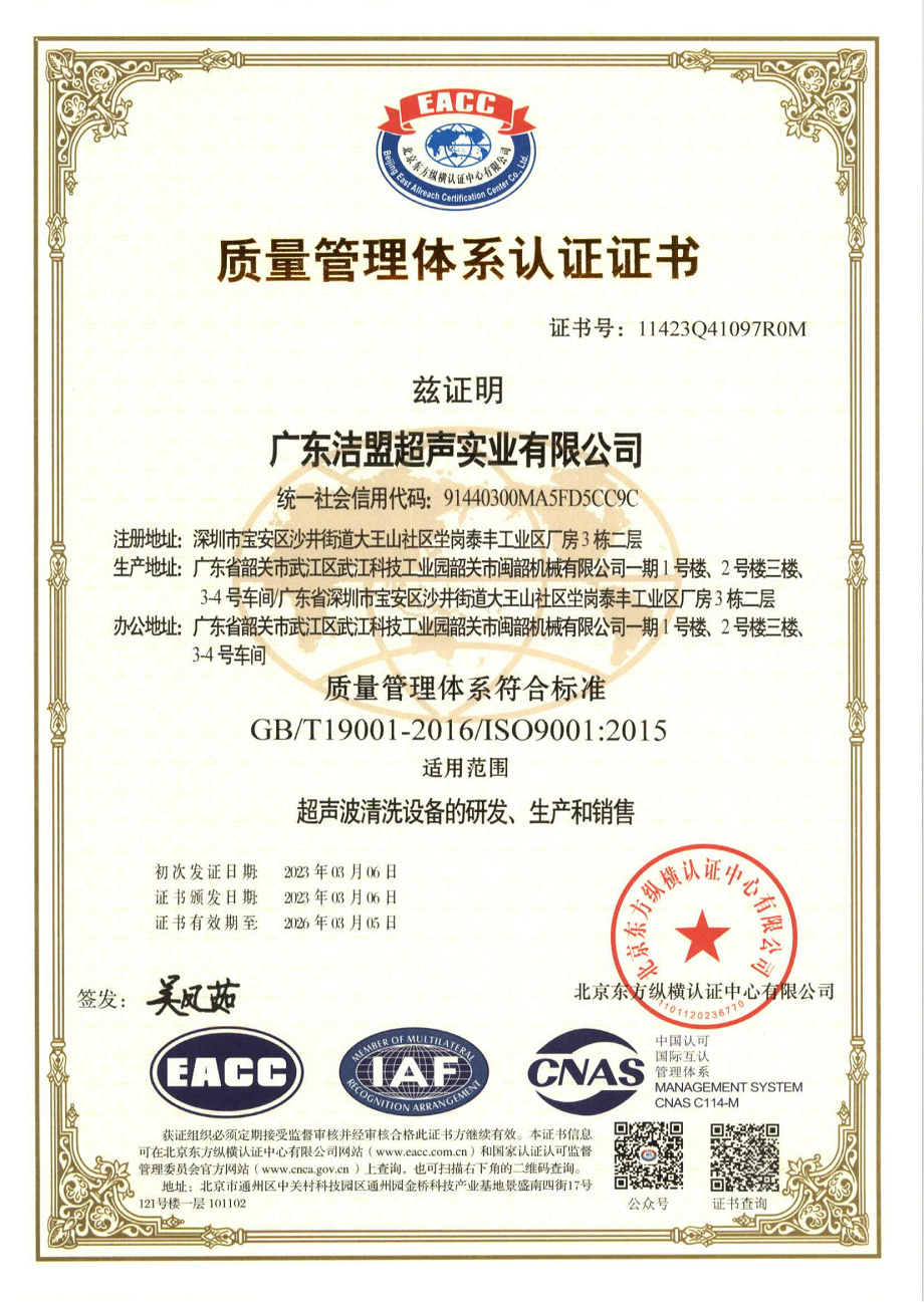 廣東潔盟--ISO9001證書